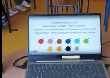 Pierwszaki na zajęciach dodatkowych z języka włoskiego świetnie się wpisały z nauką kolorów w obchodzony w tym tygodniu „Kolorowy tydzień”.