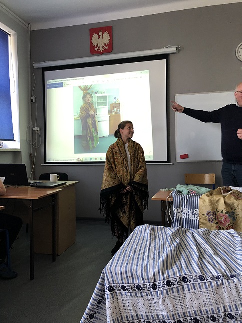 REALIZACJA PROJEKTU: Uczniowie klasy 5b przygotowywali się do spotkania z regionalistą poprzez zapoznanie się z literaturą regionalną dostępną w bibliotece szkolnej. Spotkanie z p. Tomaszem Wroną odbyło się 31 maja. Uczniowie klasy przez 1,5 godz. mieli możliwość zapoznać się z historią swojej miejscowości, legendami, tradycjami- zwłaszcza strojami codziennymi i okazjonalnymi.. Uczniowie najbardziej aktywni podczas spotkania otrzymali nagrody książkowe zakupione w ramach NPRC2.0.