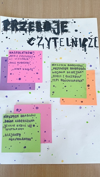 Uczniowie podzieleni na trzyosobowe grupy mieli za zadanie zebrać informacje o ulubionych książkach, wśród trzech pokoleń – dziadków, rodziców i rówieśników. Każda grupa miała możliwość przedstawienia wyników swojej pracy w formie plakatu lub prezentacji.