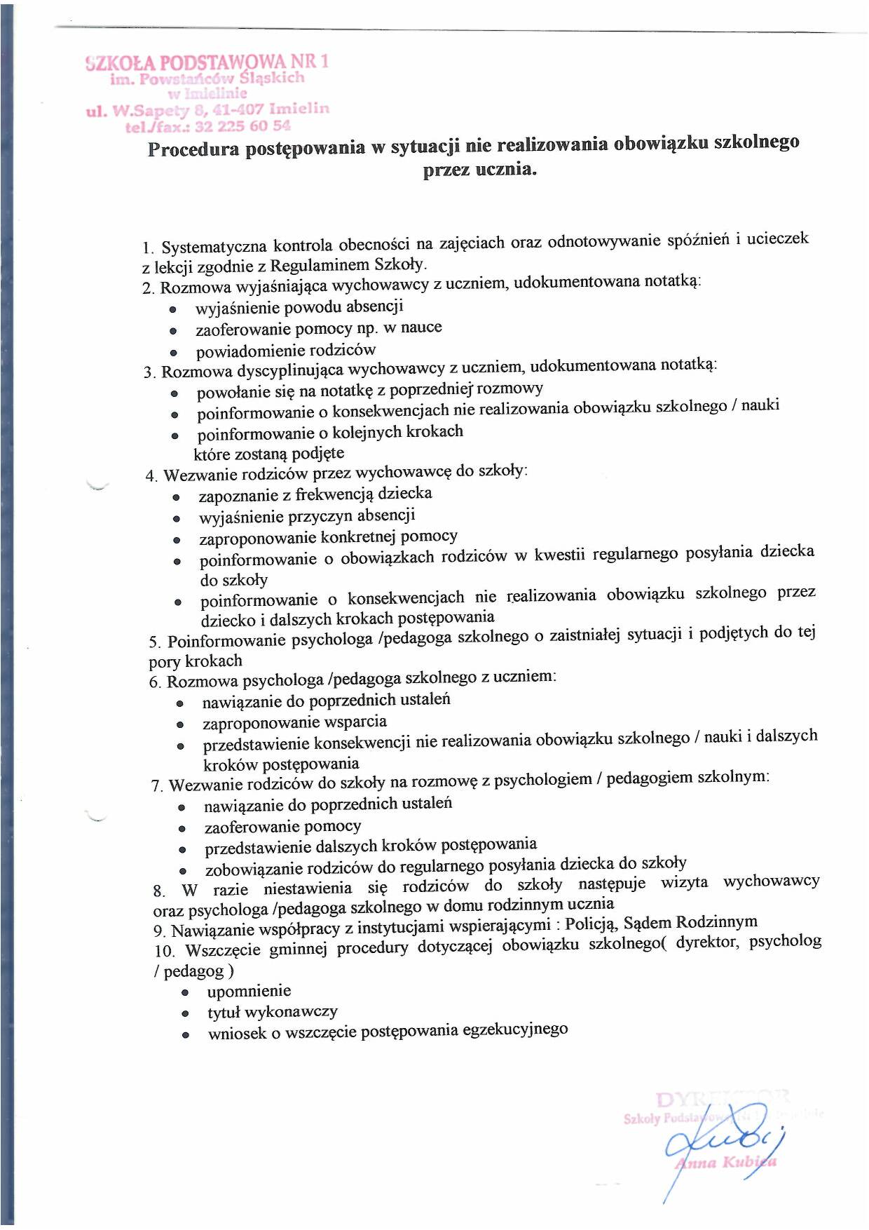 Procedury postępowań: